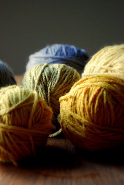 I had some left over yarn I dyed with natural dyes. Most were little odds and ends in golden tones, and I had a little more in a lovely steel blue grey.